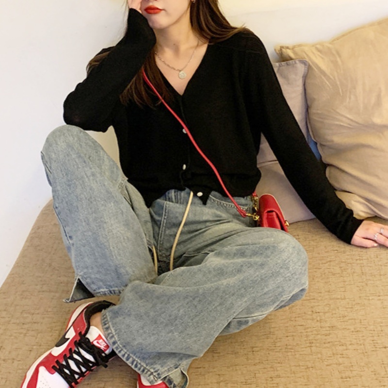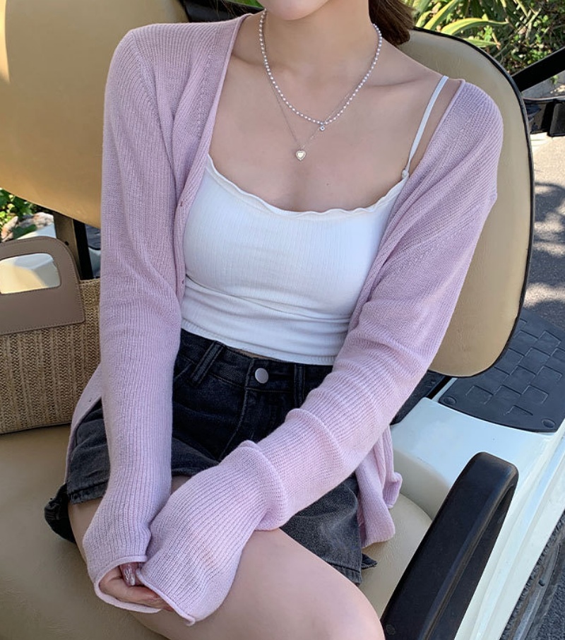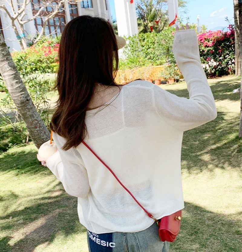 [Stella Fashion] Summer Sunscreen Outer Korean Style Women's Cover Fat Thin Top Long Sleeve Cardigan Knitted Blouse