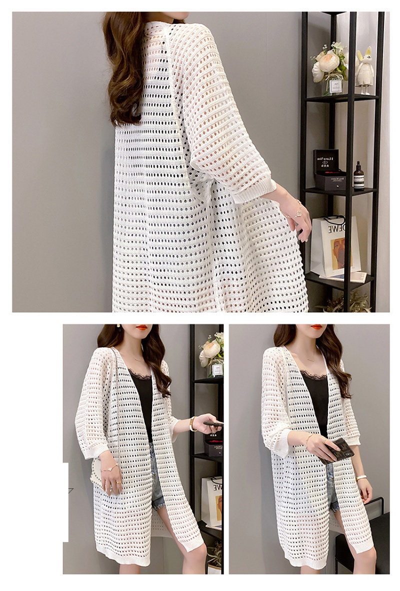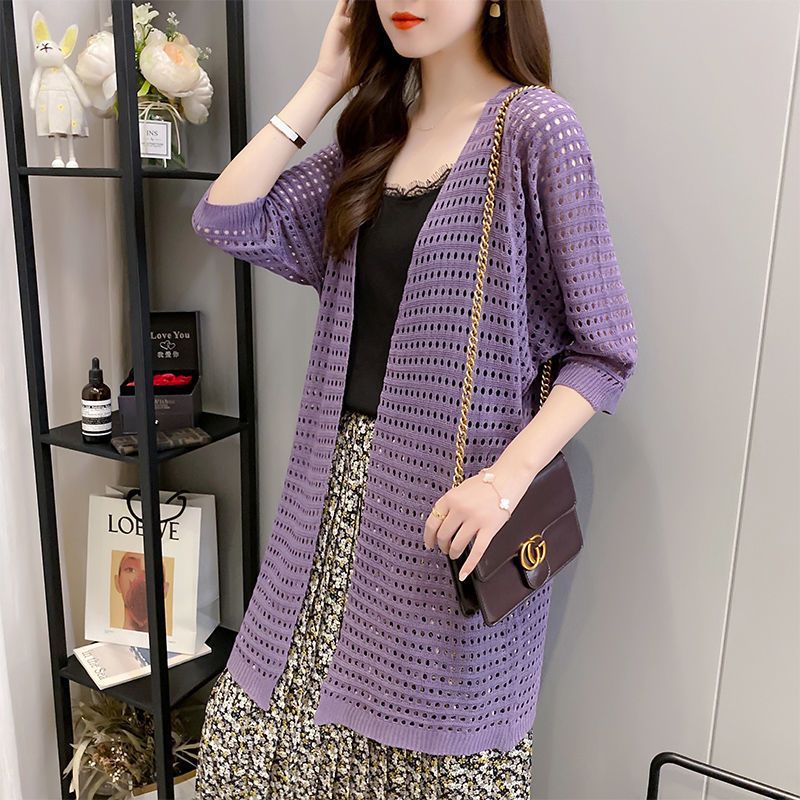 Stella Fashion Ice Silk Women's Knitted Coat Fashion Korean version women Thin loose Cardigan Mid-Length Sweater with Hallow Design